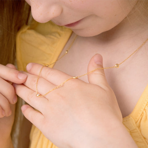 Sterling silver is a popular, affordable choice for children’s jewelry. 925 sterling silver contains 92.5% pure silver and 7.5% additional safe metals, usually copper. Sterling silver is a naturally hypoallergenic material and safe for sensitive skin. Our sterling silver is free of Lead, Nickel, and Cadmium which makes it completely safe for children of all ages. All our sterling silver jewelry is plated with rhodium, a precious metal in the platinum family, known for enhancing durability, appearance and making the sterling silver resistant from tarnishing. Silver jewelry has the perfect balance between price and look.
