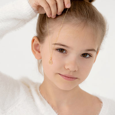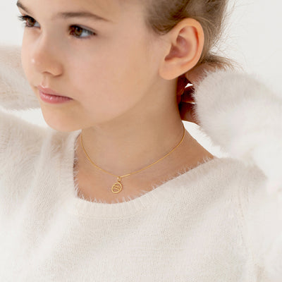 A fun personalized necklace for a young girl to receive with their personal Aquarius zodiac sign. This exquisite piece features a coin medal design, with the center delicately cut to reveal the Aquarius zodiac sign, adding a touch of personalization and charm. Crafted with care, it is safe for young girls with sensitive skin, ensuring comfort and style. Whether worn for special occasions or as an everyday accessory, this necklace will be cherished for years to come. Let your child shine bright with this timeless keepsake that celebrates their individuality and beauty.