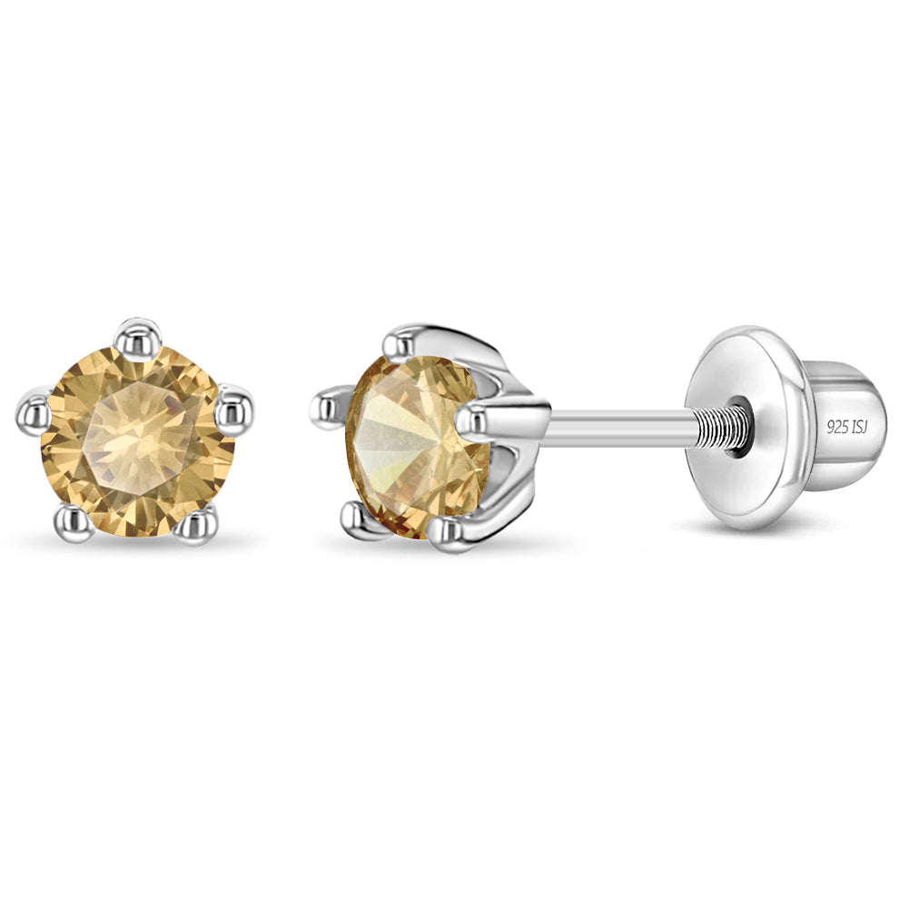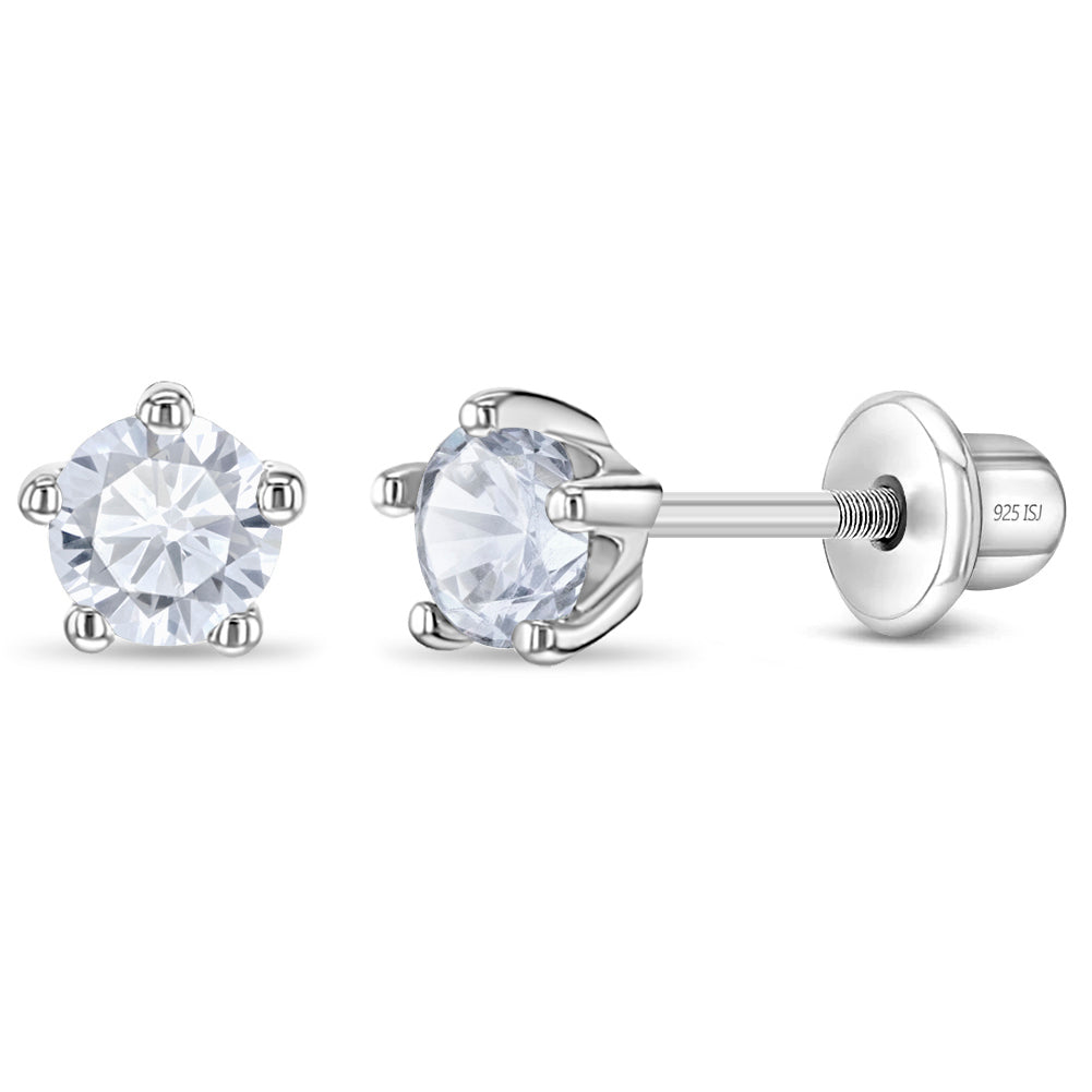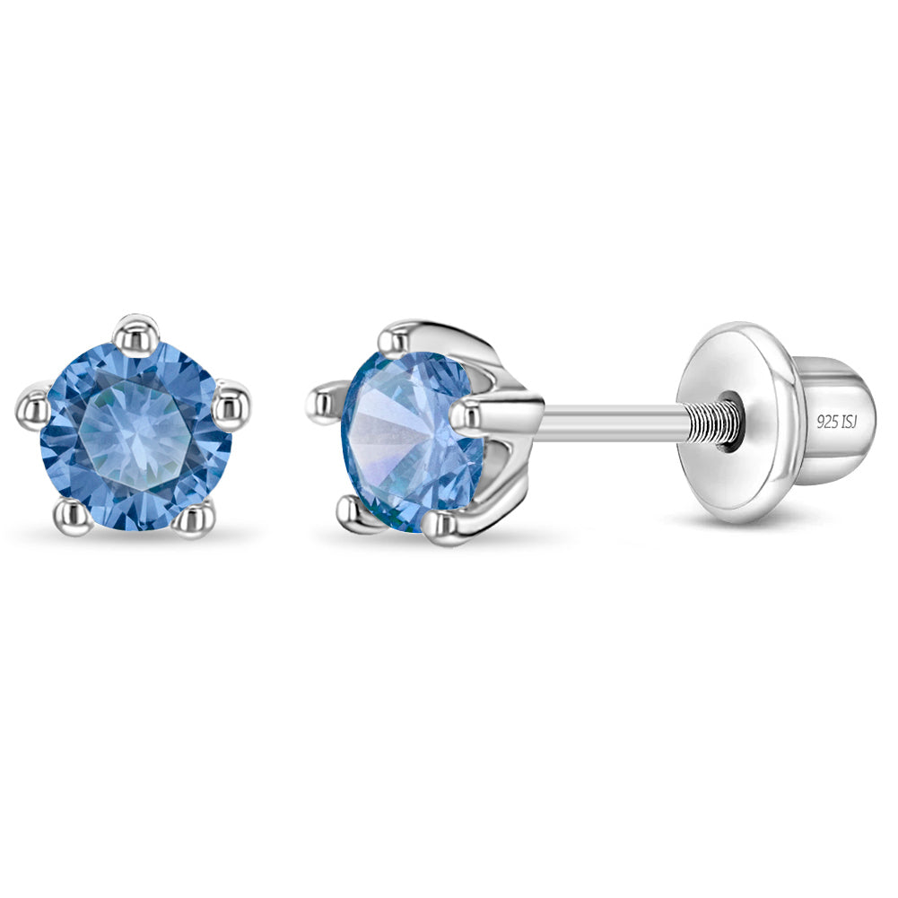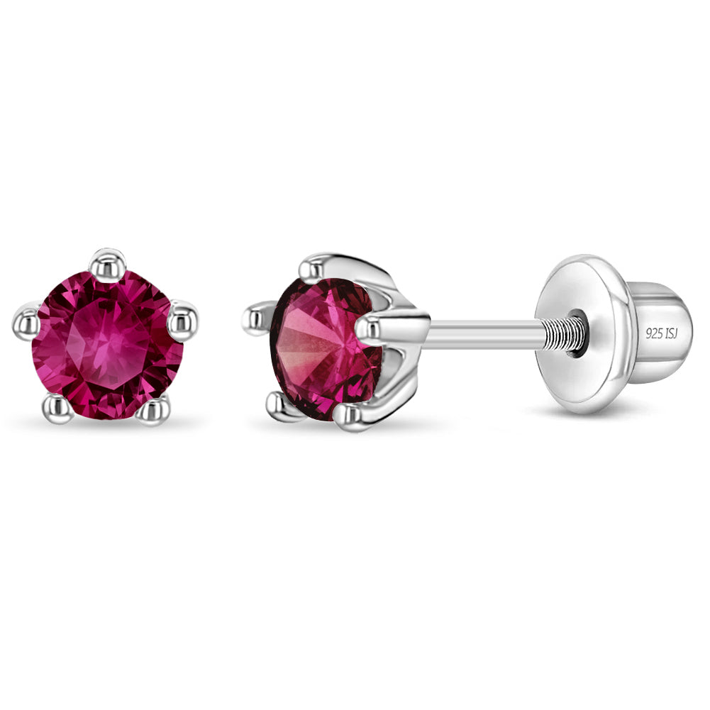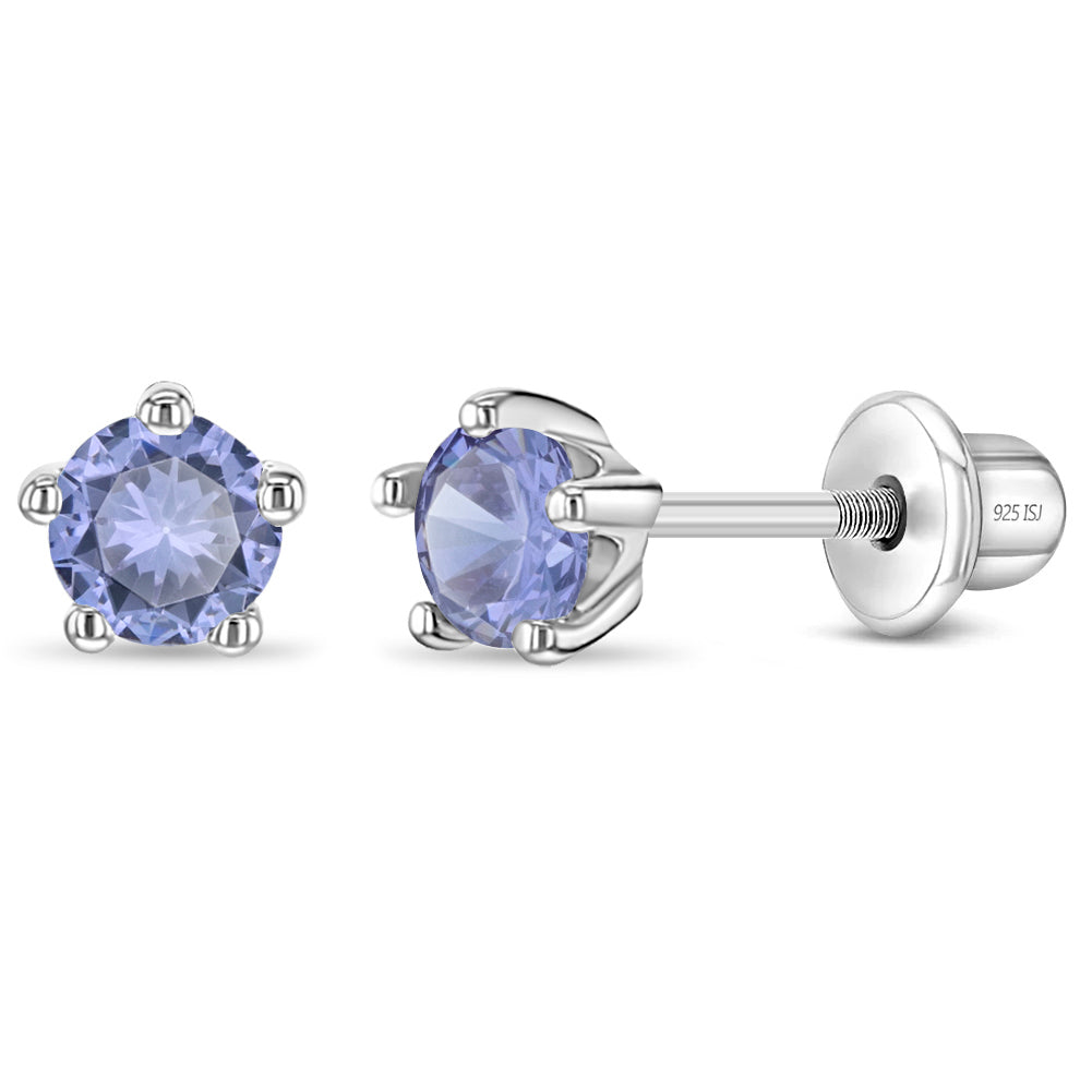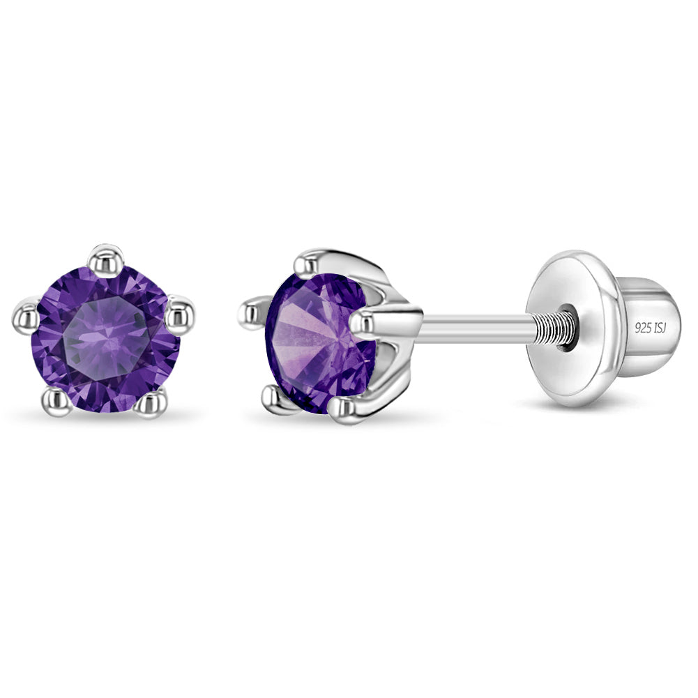 Set in a traditional jeweler's 5 prong setting, these simulated birthstone earrings are elegant and timeless. The flawless 4mm cubic zirconia stones are set entirely in 925 sterling silver, a naturally HYPOALLERGENIC fine metal. These earrings feature threaded posts and a safety back system to ensure your child's earrings stay comfortably in place. Choose your toddlers birth month stone or favorite color. A complimentary Window Box is included for easy giving!