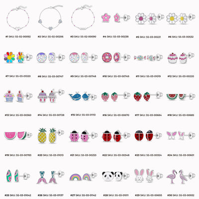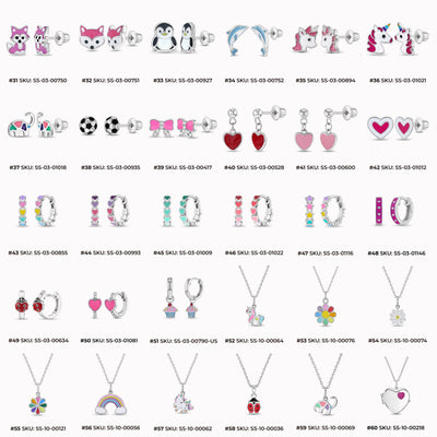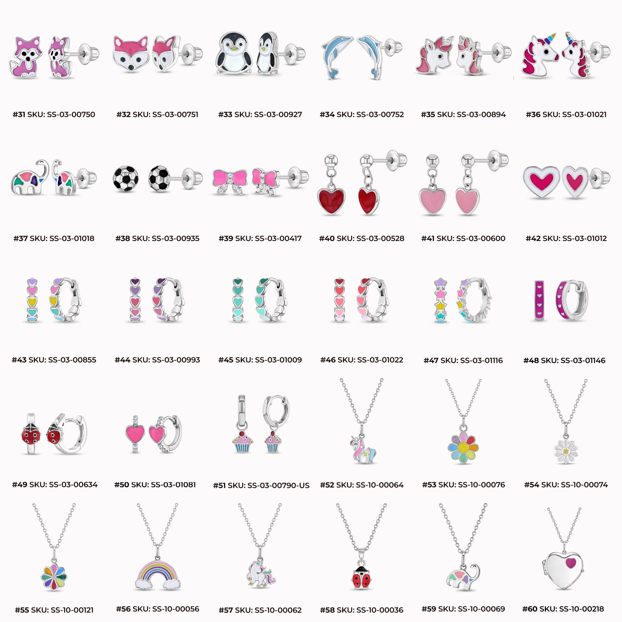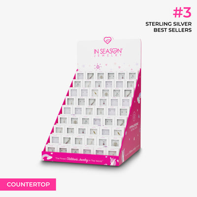 This best selling mixed bundle features a variety of our classic and high quality 925 sterling silver products. Included within this bundle is an assortment of the sweetest pairs of earrings, bracelets and necklaces for little girls. You will receive 60 of our beautiful best selling pieces delicately packaged in their individual Window Boxes, along with our fully designed In Season Jewelry Display.